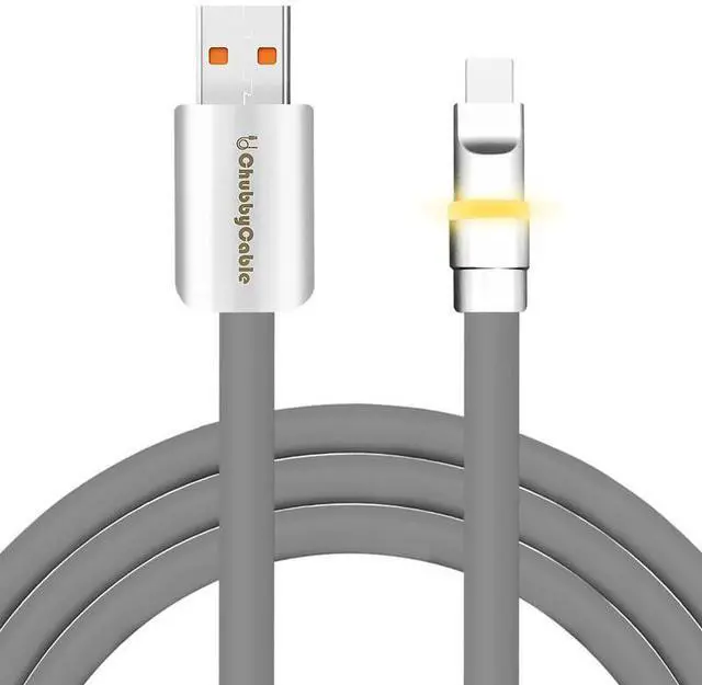chubbycable Neon Chubby - Fast Charge Cable with Smart Light RGB Color Gradual Light Up LED USB Charging Cable, Gray, USB-A to Type-C, 3.3 FT
