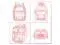 Dimensions for clear backpack : 5.9"W x 17.7"H x 11.8"L; Clear tote handbag: 4.5"W x 9.1"H x 8.7"L; Clear Pouch:2.8"W x 5.2"H x9.1"L
