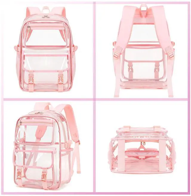 AO ALI VICTORY Large Clear Backpack For Women Men Girls 16 inch Laptop School Bookbag Heavy Duty PVC Transparent Backpacks for College Work Travel See Through Back Pack for Sport Events, Stadium, Pink