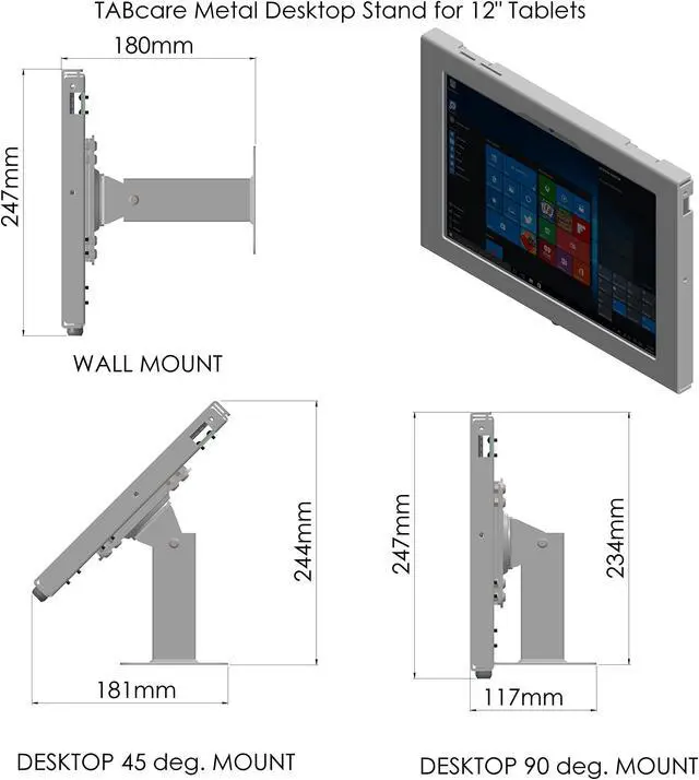 TABcare 180 Tilting 360 Rotating Locking Metal Desktop & Wall Mount for MS Surface Pro 3 4 5 6 7- Kiosk, POS, Store, Show Display (Black)