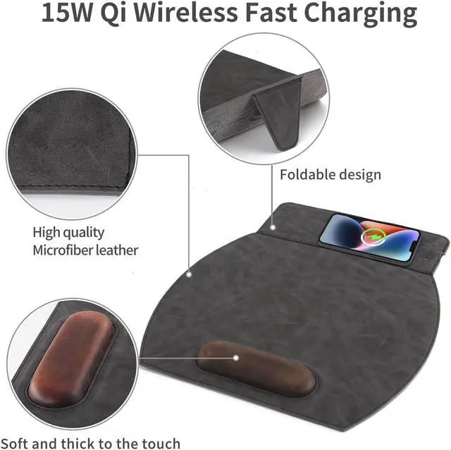High-quality Detail: Our magnetic wireless charging mouse pad is crafted with premium microfiber leather fabric, offering a surface with an unparalleled smoo