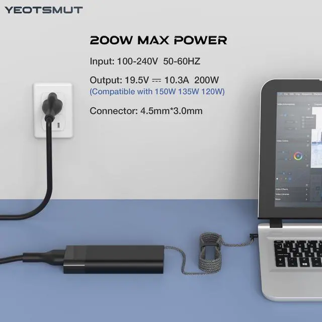 YEOTSMUT 200W AC Adapter Laptop Charger Compatible with HP Omen Pavilion 15 16 17 Gaming Laptop,Victus 15 Envy 15 ZBook 15 15u Fury Studio Power G3 G4 G5 G6 G7 G8 Mobile Workstation Slim Charger