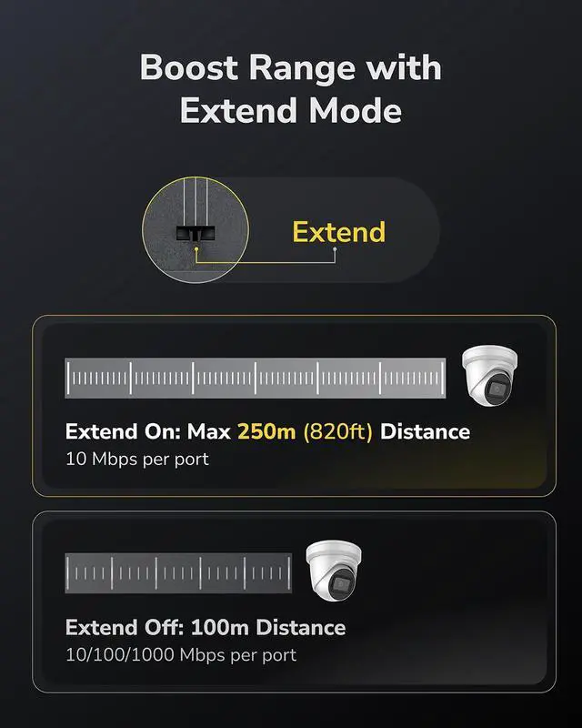 CCTV function support remote power and data feeding up to 250m long distance, which is easy to expand network via ethernet cable to somewhere without power supply but need fix device such as IP Cameras.