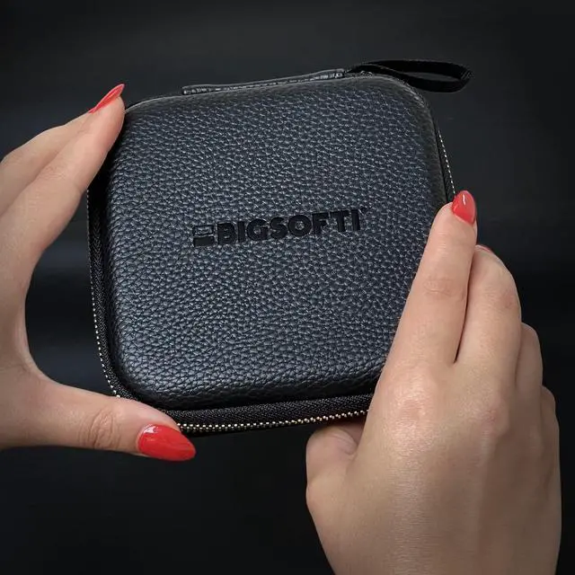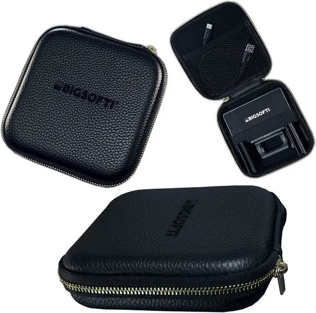 BIGSOFTI Carrying Case - for Light Accessories, Tech Travel Organizer case bag for Electronic Gear, Portable Hard Drive Storage, - with Cable pouch - Black leather look, gold zipper