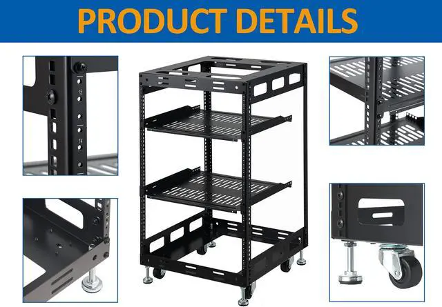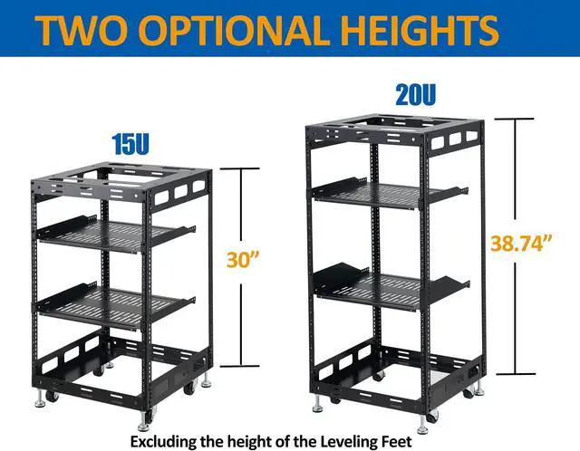 [All Inclusive]: Including 4pcs of casters, 4pcs of leveling feet, 2pcs of 1U vented shelves (16 depth) and other accessories required for rack assembly.