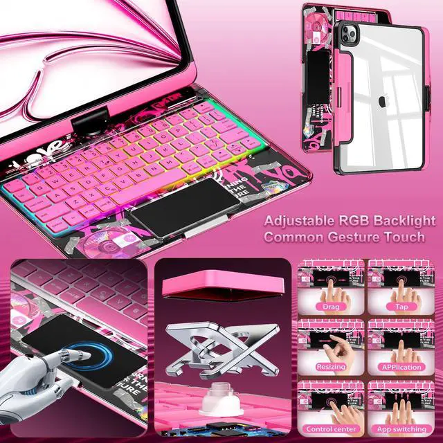 CNAIDUNR Transparent 360°Rotating Keyboard Case for iPad Air 13-in.(M3/M2, 2025/2024),iPad Pro 12.9-in (6/5/4/3 Gen),Clear Hard PC Back,Trackpad,Pencil Holder,7 Color Backlight,Pink