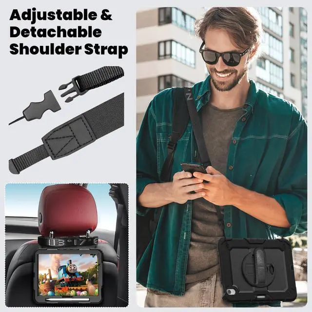 Whmeolyo for iPad Air 11-Inch Case M3/M2 (2025/2024), Shockproof Case for iPad Air 7th/6th Generation 11 Inch with Screen Protector/Pencil Holder/Kickstand [Hand & Shoulder Strap], Black
