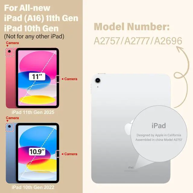 Compatibility : Exclusively designed Shockproof Case for iPad (A16) 11th 2025/10th Generation 10.9 inch (Model includes: A2696 / A2757 / A2777) 2022 Released. NOT fits other Generations iPad.[With Screen Protector]