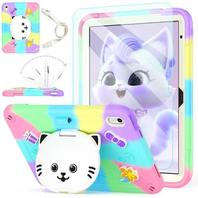 TOMORRY Case for iPad (A16) 11th 2025 /10th Generation 10.9 Inch 2022 with Tempered Glass Screen Protector,Cat Stand&Pencil Holder Shoulder Strap,Shockproof for iPad Case 10th Gen kids Girls-Colourful