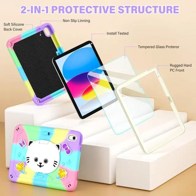 Exclusively Designed : This case for kids iPad 11th/10th generation Premium Soft silicone rubber and hybrid hard PC + front hard PC bumper 2 in 1 design easier to install and remove than three layer with stands daily drop, bump and shock with four corner cushioning for protection, suitable for the Kids girls and adults (This ipad 11inch/10.9 inch case)