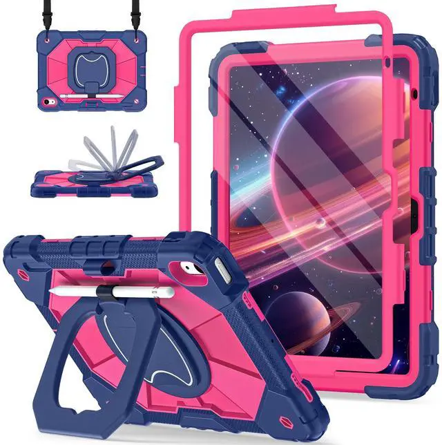 Scnioy Case for iPad (A16) 11th Generation 11 Inch (2025) / iPad 10th Generation Case 10.9 Inch (2022) with 360° Rotating Stand Screen Protector Pen Holder Shoulder Strap, Navy Pink