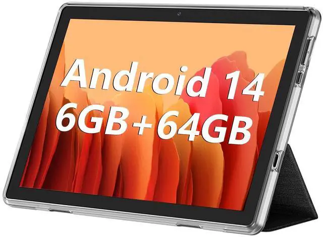Android Tablet, 10.1 inch Android 14 Tablets 6GB RAM 64GB ROM 1TB Expand, 1280x800 IPS HD Touchscreen, 6000mAh Battery, Bluetooth, Dual Camera, GMS, WiFi (Black)