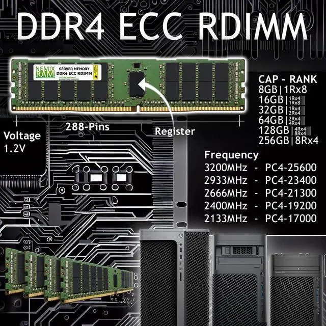 NEMIX RAM 16GB (2X8GB) DDR4 2400MHZ PC4-19200 1Rx8 1.2V CL17 288-PIN ECC RDIMM Registered Server Memory KIT