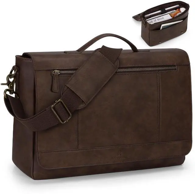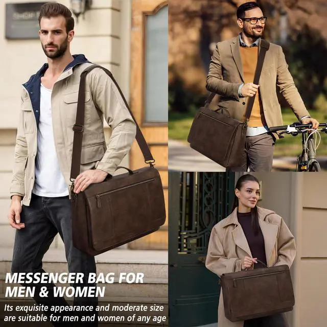 PROFESSIONAL WORK BAG: The Main compartment of the messenger bag for men is equipped with a padded laptop compartment that fits for laptop up to 15.6 inches;1 iPad pocket and 1 wall zipper pocket. Under the flap of the leather messenger bag, there is a large magnetic snap pocket(with 4 pen slots,2 slip pockets, and a removable keychain). The exterior of the leather laptop bag for men features a front zipper pocket and a back zipper pocket for easy access