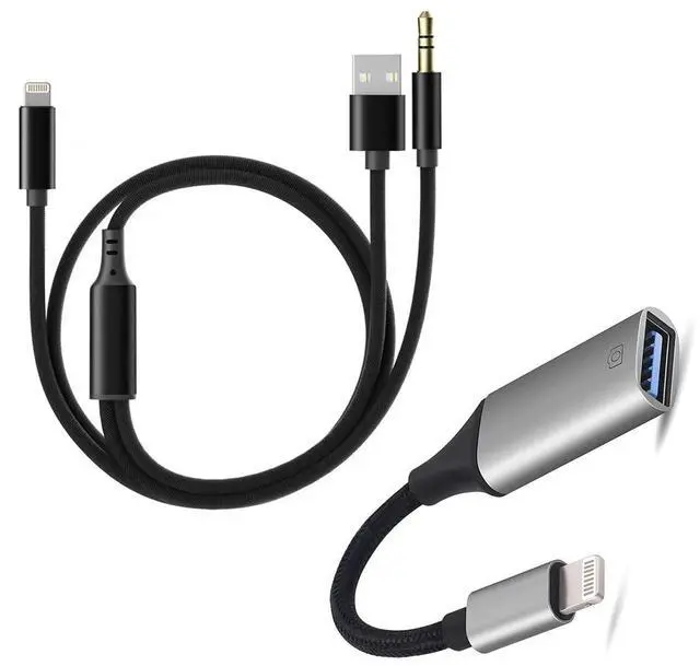 3.5mm Aux + USB The iPhone 3.5mm audio cable is suitable for connecting speaker, car audio, headphone and other audio output devices with a 3.5mm universal audio jack. The iphone USB charging cable supports the connection of USB power adapter/power bank/car charging (length: 3.94 ft)
