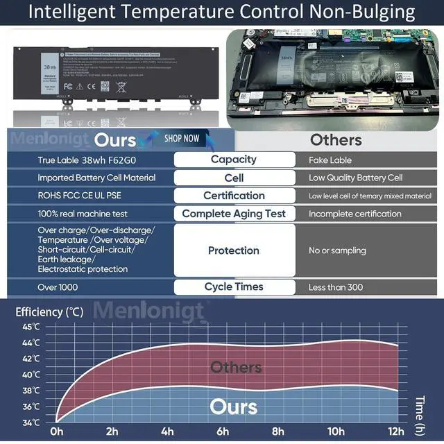 4.SECURITY : 38Wh F62G0 laptop batteries have passed strict intelligent detection, such as short circuit protection, over voltage protec