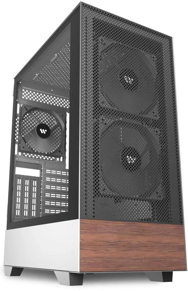 KEDIERS PC CASE ATX 3 Case Fans Pre-Installed, Mid Tower Computer Case with Tempered Glass, Printed Walnut Wood Panels, Support 360mm Radiator, Black Gaming Desktop Case (H3)