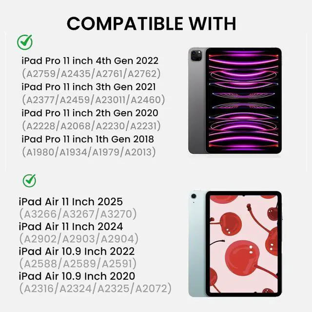 Compatible for: A case for iPad 11th Generation 11.9 inch 2022(Model A2696, A2757, A2777 only)/2021(A2377, A2301, A2459, A2460)/2020(A2228, A2230, A2231, A2068)/2018(A1980, A1934, A1979 A2013). Please Note: It doesn't compatible for any other tablet model