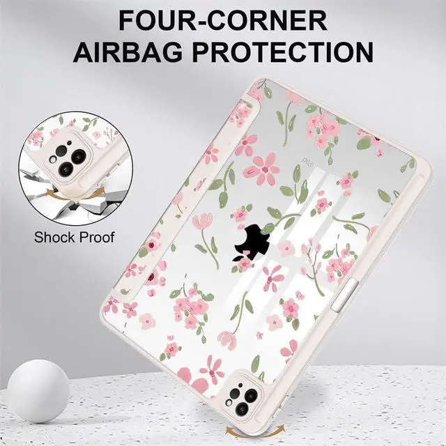 iPad Clear Case for iPad Pro Generation 11Inch 2018/2020/2021/2022 /for iPad Air 4/5/6/7 10.9 Inch with Pencil Holder-[Auto Wake/Sleep], Trifold Stand Soft TPU Protective Cover, Cherry Bows