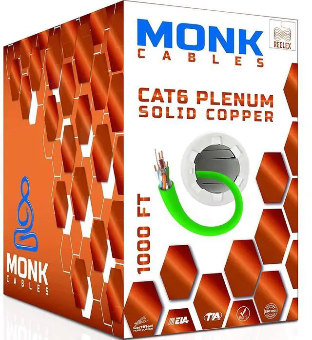 MONK CABLES | CAT6 Plenum Cable 1000ft | 100% Pure Copper | UTP, 23AWG, 550MHz | DSX-8000 Certified | Most Certified Cable of The Whole Market (Green)