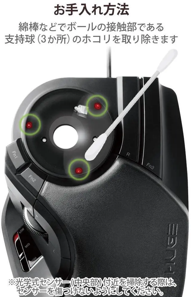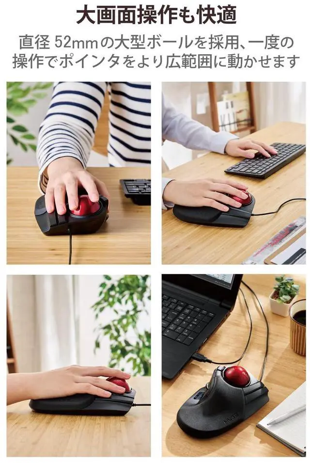 The HUGE" trackball mouse is a 52mm diameter large ball that allows you to move the pointer more wide with one operation.
