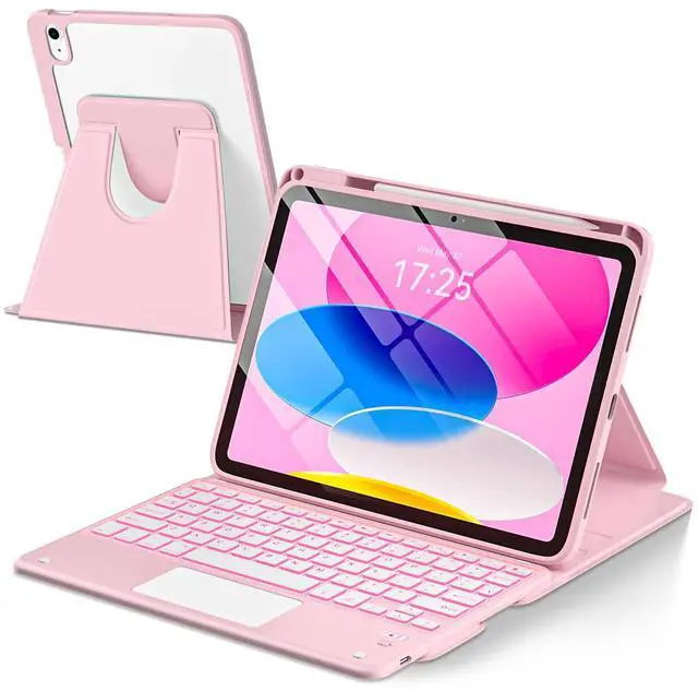 TaIYanG Touchpad for iPad A16 11th/10th Generation Case with Keyboard, 7 Color Backlit 360 Rotation Cover with Pencil Holder, Detachable Keyboard for iPad 11 inch 2025/10th Gen 10.9 '' 2022 (Light Pink)