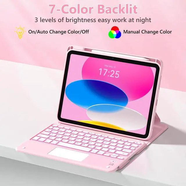 TaIYanG Touchpad for iPad A16 11th/10th Generation Case with Keyboard, 7 Color Backlit 360 Rotation Cover with Pencil Holder,Detachable Keyboard for iPad 11 inch 2025/10th Gen 10.9'' 2022 (Light Pink)
