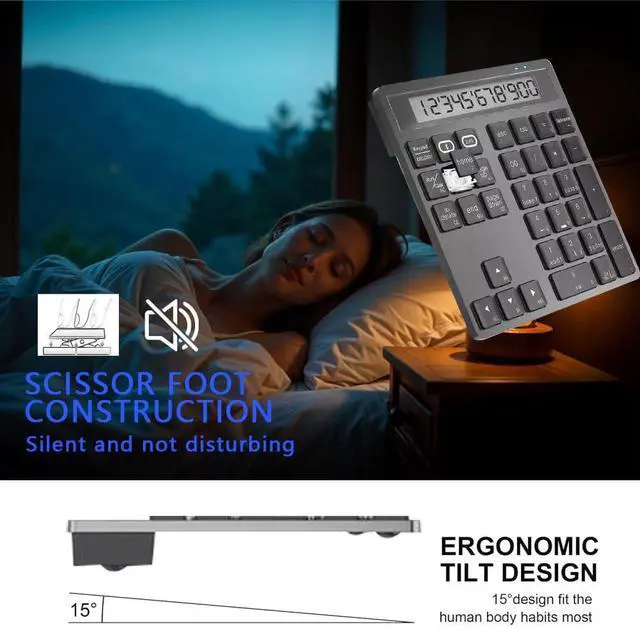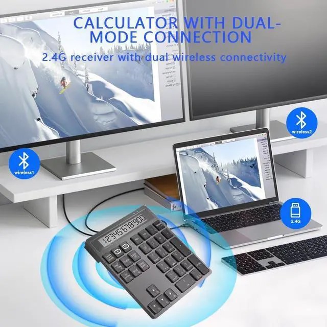 Wireless Bluetooth Numeric keypad and Calculator 2-in-1 Silent Multifunction keypad with Display Office Business for PC, Mac, Laptop, Desktop (Black)
