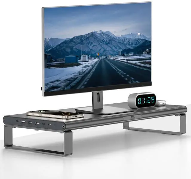 Heavy-Duty Aluminum Alloy Monitor Stand Riser (44 lbs) : Made of aluminum alloy, this large stand supports monitors/laptops up to 44 lbs. Its ergonomic height design elevates screens, reducing neck strain for studio or office use.