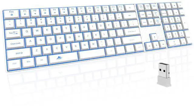 Wireless Backlit Keyboard Quiet - Computer Rechargeable Ergonomic Light UP Keyboard, Silent Keys Full Size Compatible for Windows, Desktop, Laptop, PC, Gaming, PS5 - White