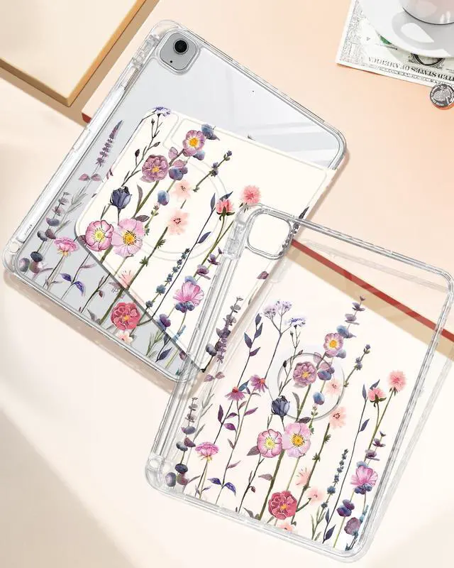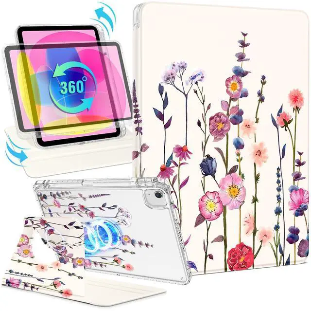 Shorogyt for iPad Air 11 Inch Case M3 2025&M2 2024/Air 5th Generation 2022/Air 4th Gen 2020/Pro 11 Inch Case Magnetic Stand for Women - Cute 360 Degree Rotating Cover Girls Pencil Holder, Little Flower