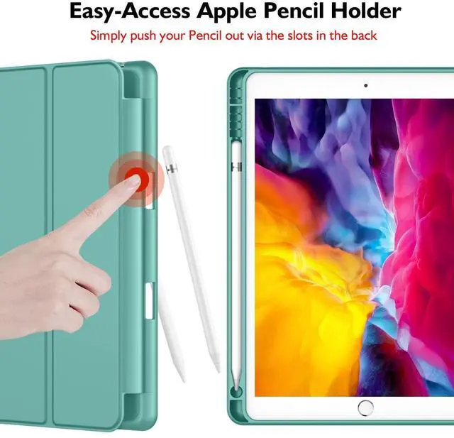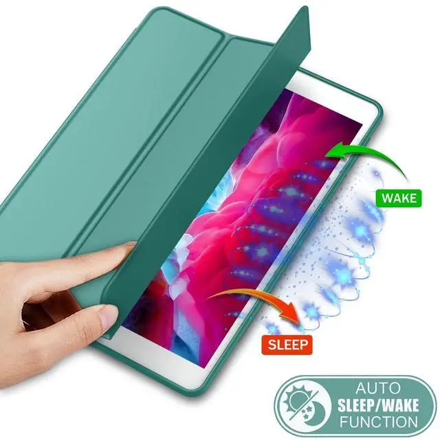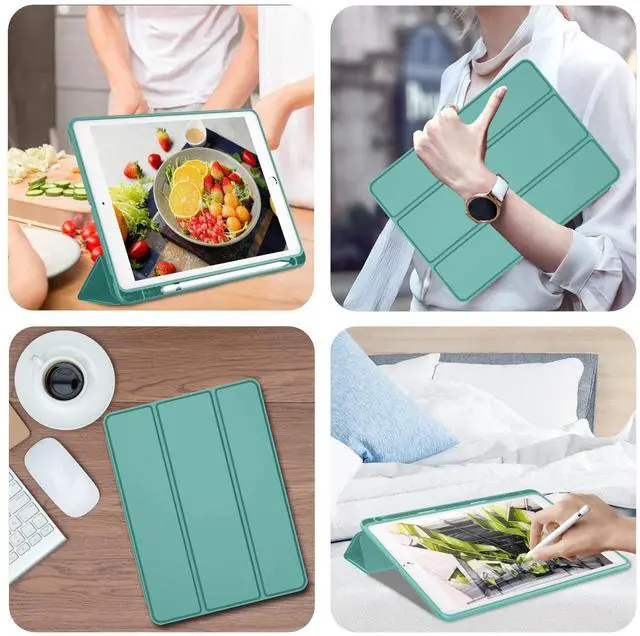 iMieet iPad 9.7 Case (2018/2017 Model, 6th/5th Generation), Smart Cover with Pencil Holder and Soft Baby Skin Silicone Back and Full Body Protection, Auto Wake/Sleep Cover (Forest Green)
