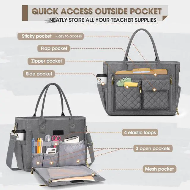 Insulated Lunch Compartment & Leakproof: The teacher tote bag features a lunch compartment on the side that can keep food warm for up to 4 hours and cold drinks for up to 6 hours. The high-quality insulated layer of the lunch compartment keeps the food fresh and warm at work, and is easy to clean. Whether its drinks or food scraps accidentally spilled, wipe with a wet cloth. It could accommodate 6*250ml cans. Lunch tote bag is ideal for nurse, teacher, office worker carrying lunch to work.
