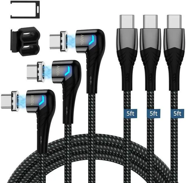 ZBF 100W USB C Magnetic Charging Cable, Right Angle Magnetic Phone Charger Cable(3 Pack, 5/5/5FT) 5A Fast Charging for MacBook Pro/Air, Pad Pro, Phone 17 16, 14, 13 Pro Max, MacBook Pro Pad Galaxy S22