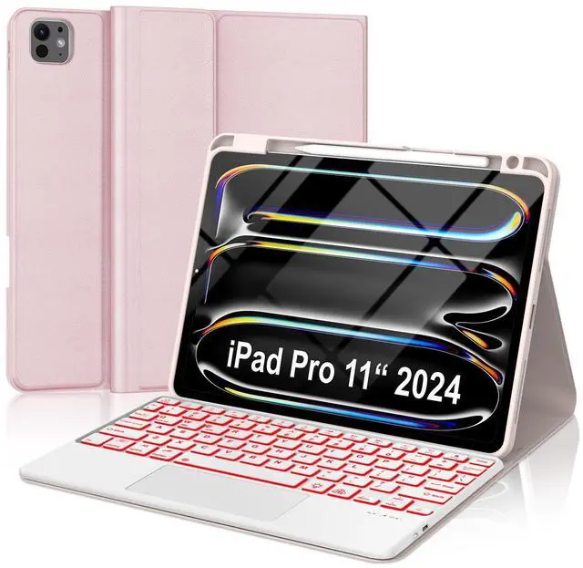 Keyboard Case for iPad Pro 11-inch (M4) - Magnetic Wireless Keyboard with Multi-Touch Trackpad 7 Colors Backlit Stain Proof Folio Wireless Cover for iPad Pro 11 Inch 2024, Light Pink