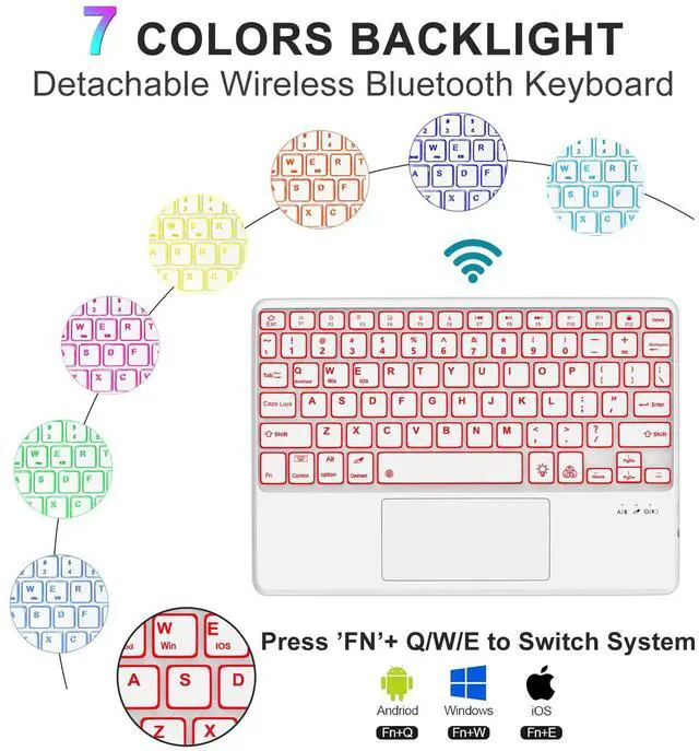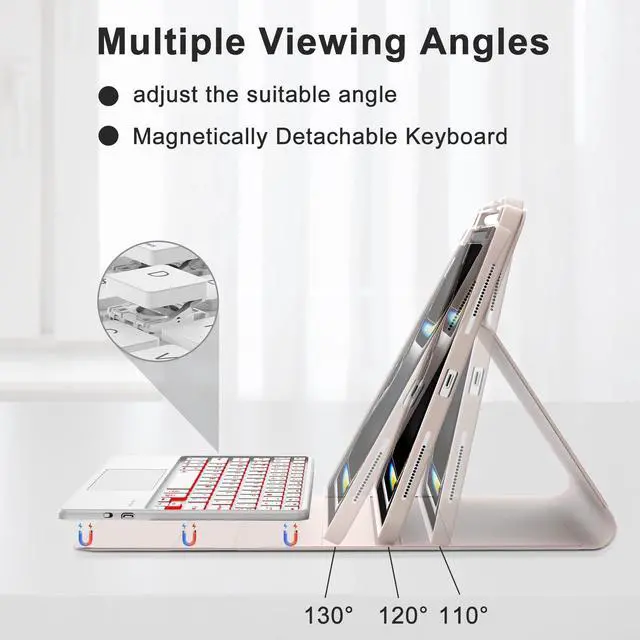 7 Colors Backlit Detachable Keyboard - This for iPad 11 Pro case with keyboard is designed with laser-etched backlit keys that allow 7 vibrant colors to shine in the dark, illuminated typing is more fun and atmospheric. You can choose your favorite color, bringing you different visual enjoyment. 3 levels adjustable brightness delivers an amazing typing experience in any dim condition