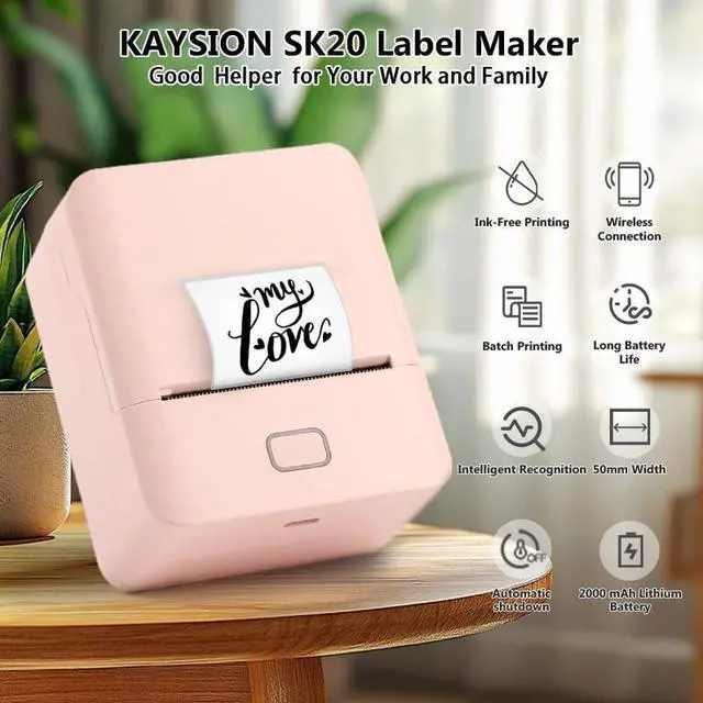 KAYSIO SK20 Label Maker Machine with Tape - Bluetooth Thermal Label Printer,Barcode Label Printer Use for Office,Home Include Three Thermal Labels(Pink)