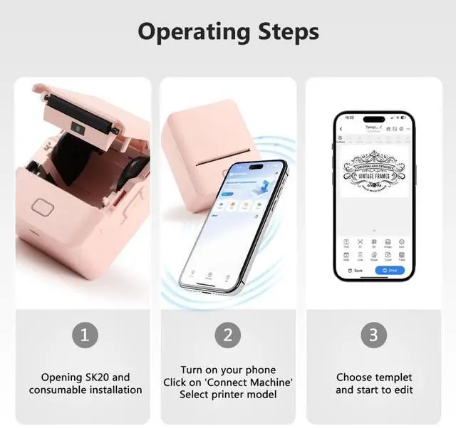 Mini Label Maker Prints:SK20 small label printer is lightweight at 212g. easy to carry, and pocket-sized. Its eco-friendly, mess-free, and needs no ink cartridgesComplete for hassle-free printing!