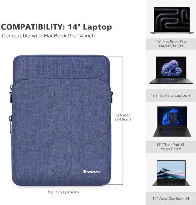NIDOO 14 inch Laptop Sleeve Protective Computer Carrying Case Bag for 14" ThinkPad E14 Gen 4/ T14s Gen 5/ ThinkPad X1 Carbon Gen 12/14" MacBook Pro M4 M3 / Asus ZenBook 14/ 13.5" Surface Laptop 6 5
