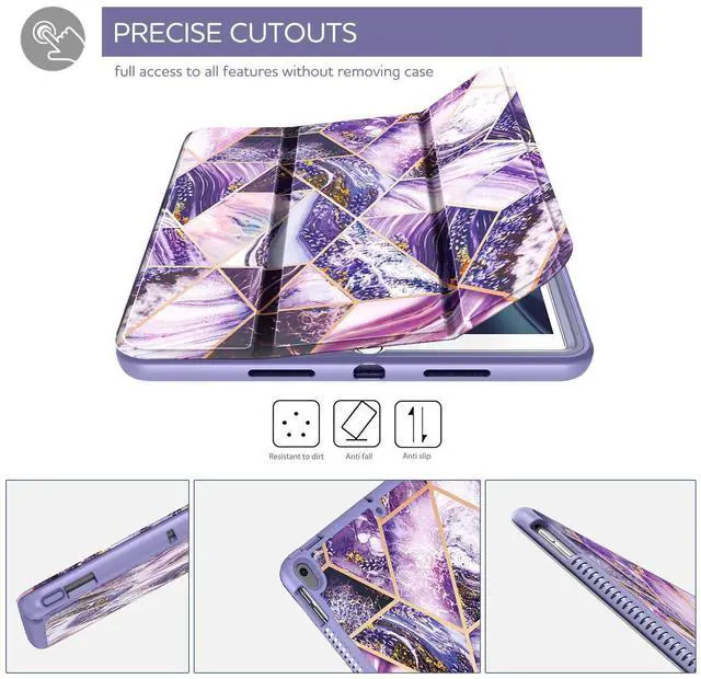 SURITCH Case for iPad Air 3 2019 (3rd Gen) /iPad Pro 10.5 2017, [Built-in Screen Protector][Pencil Holder] Full Body Trifold Stand Protective Case Cover with Auto Wake/Sleep for Apple iPad-Purple Marble