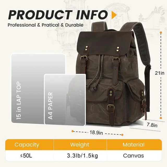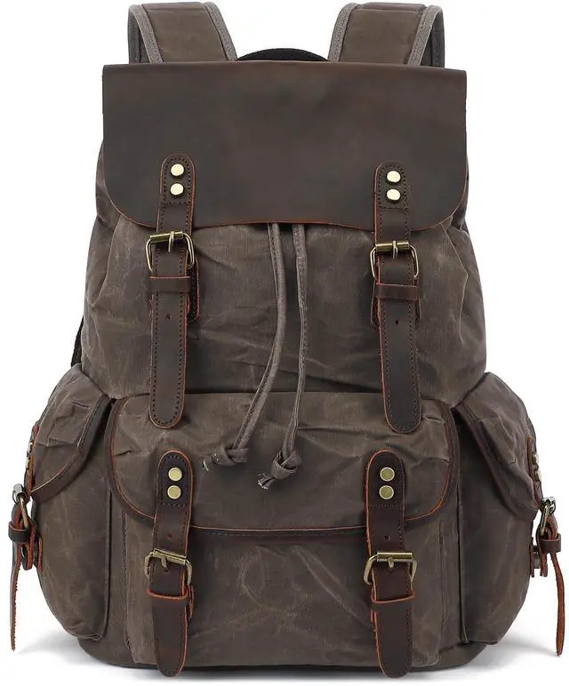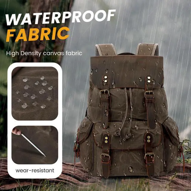 ADVENTURE-READY DURABILITY:Crafted from water-resistant waxed canvas and genuine leather, this backpack stands up to rain, wear and tearperfect for travel, hiking, and daily commutes.