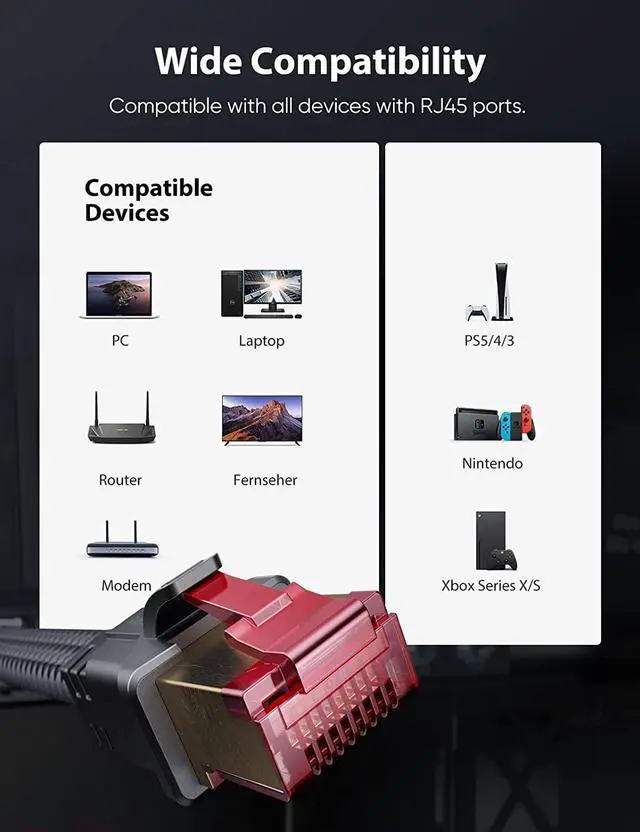 ¡¾Wide Compatibility¡¿ Cat8 ethernet cable 15 ft provides universal connectivity for networking switch, IP Cam, routers, switch, ADSL, Modem,PS-4,X-box,Patch panel,Servers Networking Printers, Netgear, TP-link, NAS, VoIP phones, Coupler,Keystone jack, Smart TV, Imac and other device with RJ45 connectors.The ethernet cables cat 8 can also be fully backward compatible with Cat7/Cat6e/Cat6/Cat5e/Cat5.This lan cable ethernet cord will improve the reliability and accuracy of data transmission.