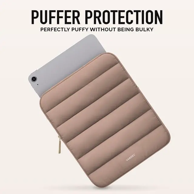 FITS YOUR BAG: Our soft puffer material is compressible, so it wont take up room in your backpack or tote. Thats why this is the perfect tablet bag for women and men on the go