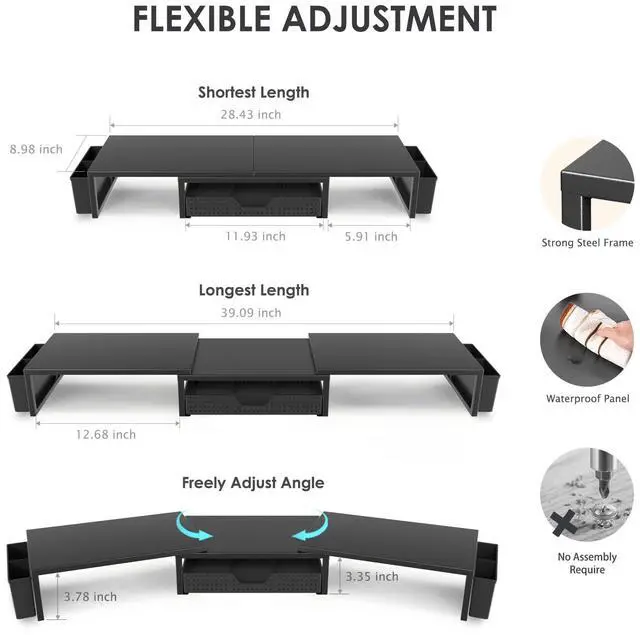 Unlock Extra SpaceRaise your monitor height with this monitor riser to free up space underneath. Store your keyboard, mouse, files, printer, gaming items, etc. neatly. Fits perfectly in any home, office, or dorm. Maximize desktop space and master desk organization