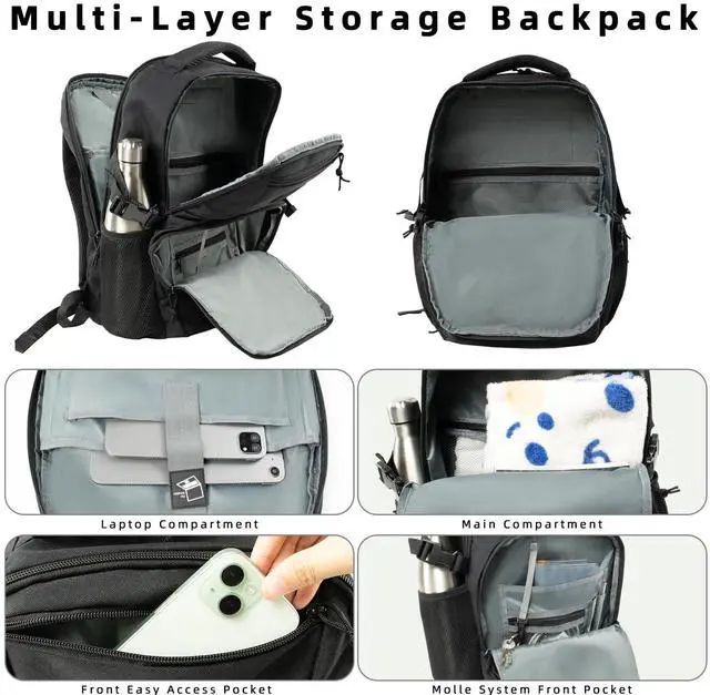 Multi-purpose Outdoor BackpackThe size of the travel computer backpack is 17.91 x 11.41 x 6.69 inches, with a capacity of 25L. It can hold a 15.6-inch laptop and is made of strong waterproof fabric. It is equipped with padded straps and a good load-bearing compression system, making it very comfortable to carry. The MOLLE system is very convenient for attaching additional backpacks or equipment and is highly suitable for use by police officers, workers and riders.