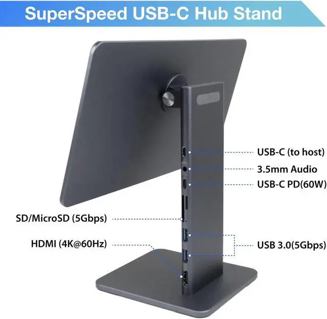 Expert Connect Magnetic iPad Stand Hub Docking Station for Air 10.9 -inch, Pro 11-inch ^^ 60W USB-C DP, 4K@60Hz HDMI, 5Gbps USB A, 3.5 mm Audio, Card Readers