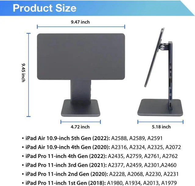 Compatible with iPad Air 10.9-inch Gen4 (2022), iPad Air Gen5 (2022), iPad Pro 11-inch Gen 4 (2022), Gen 3 (2021), Gen 2 (2020), Gen 1 (2018), but does not support iPads with protective cases or covers