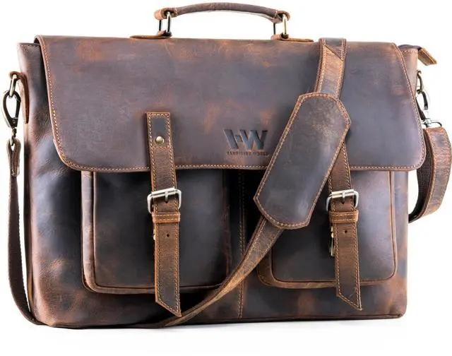 Handmade World Genuine Leather Messenger Laptop Bag 'The Optimus' Hunter Buffalo Leather Briefcase For Men Fits 17 Inch Computer Satchel Crossbody for Office Work Business