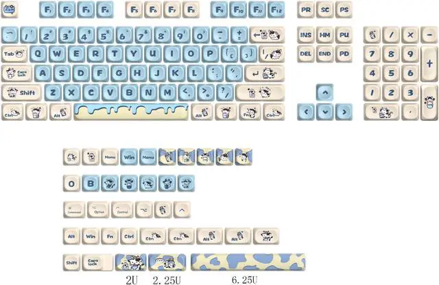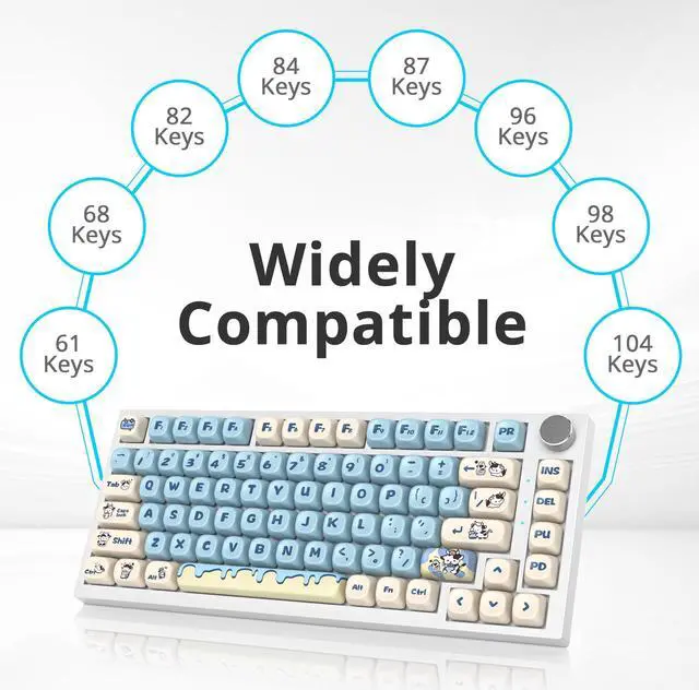 Keycaps Set CompatibilityIt can be used for ANSI layout mechanical keyboard. And its compatible for 60%/65%/75%/80%/100% (61/64/68/82/84/87/100/104/108) keyboards. The keycaps are compatible with any key switches with cross-shaped switches.