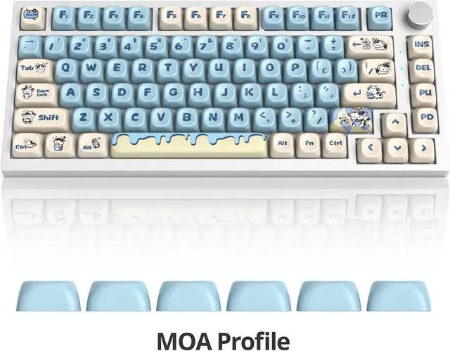 MOA Profile KeycapsThe keycaps are designed in the MOA profile, more beautiful and cute than the XDA keycaps,with more rounded edge lines,stronger curvature and higher typing comfort, let people refreshing.